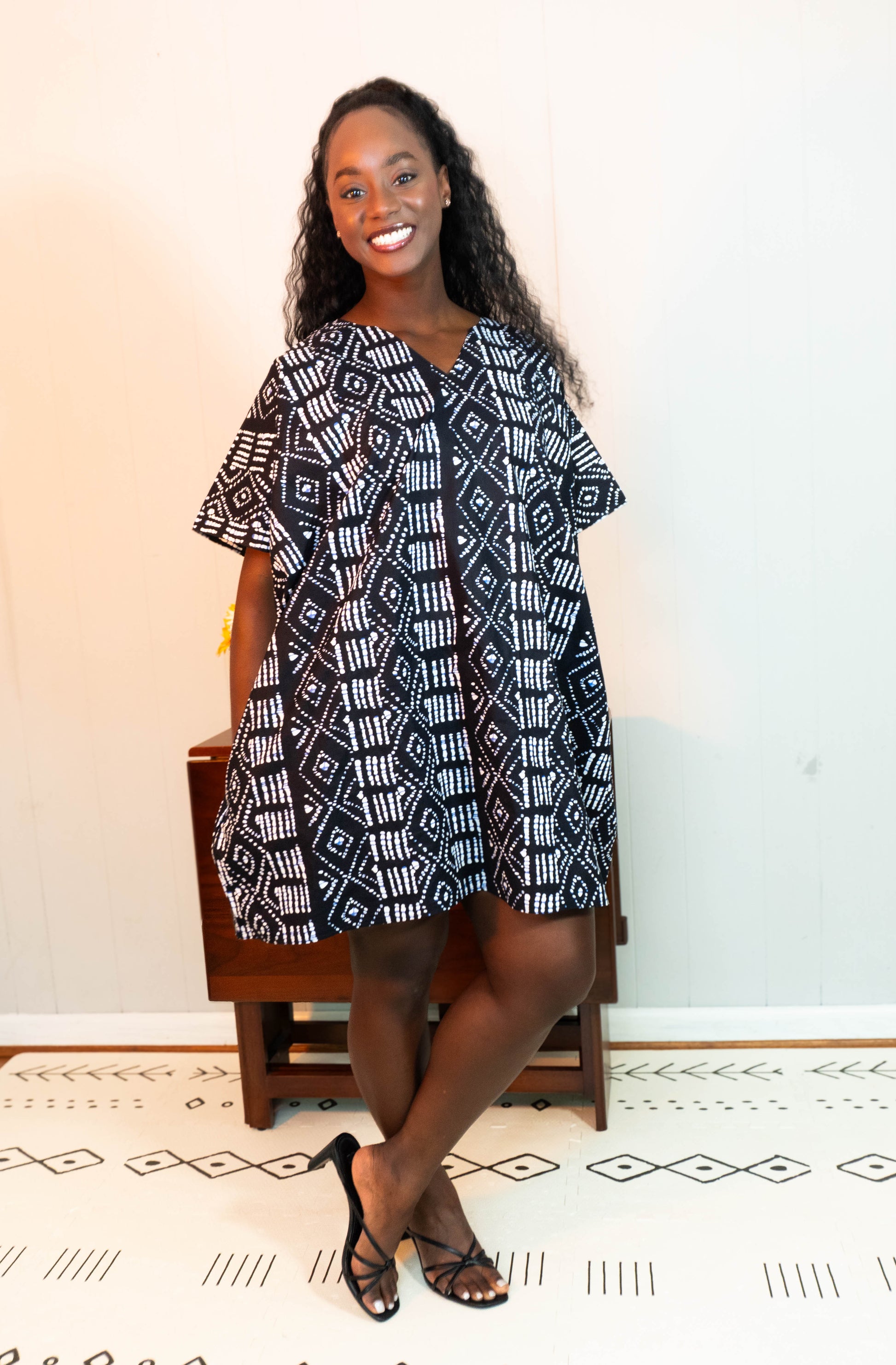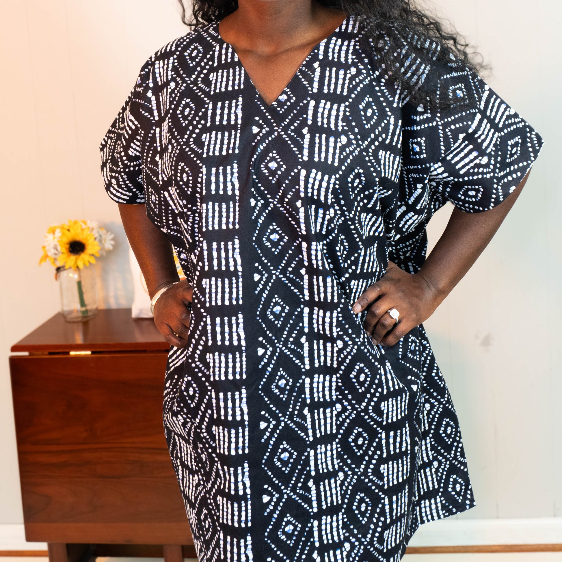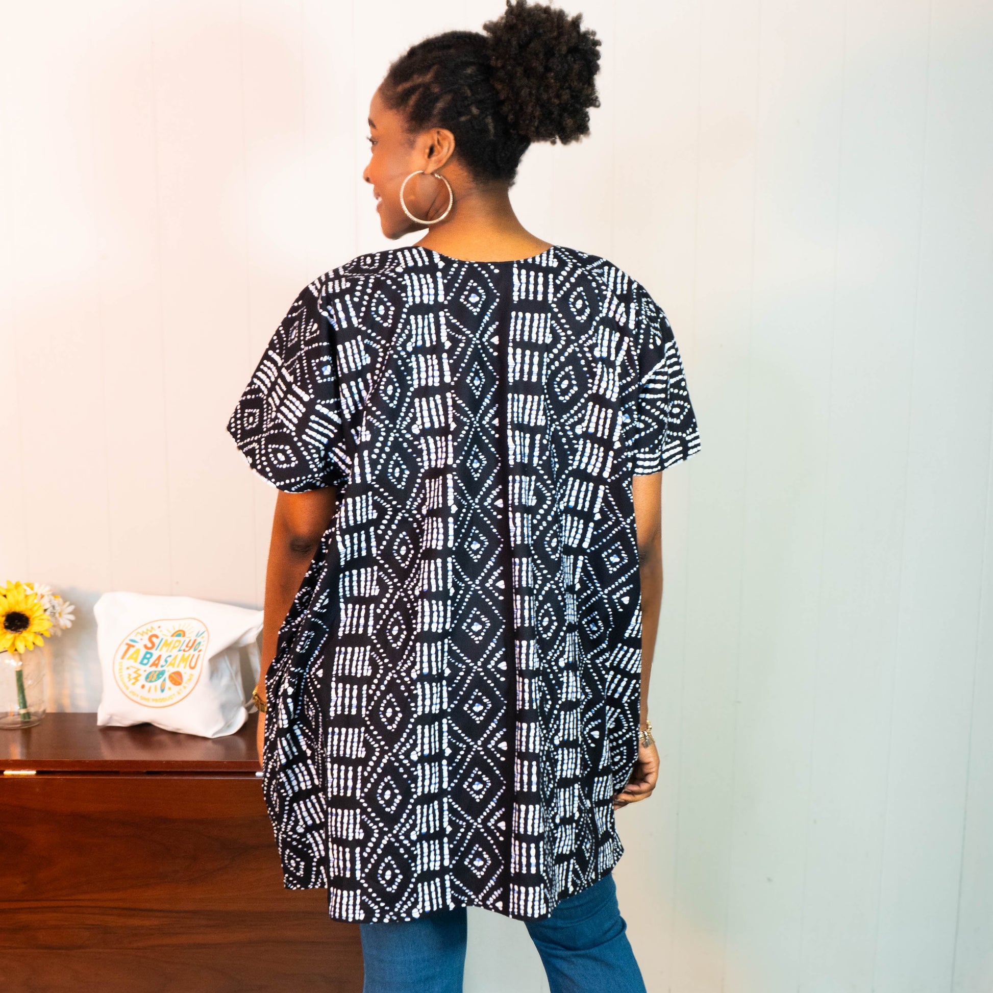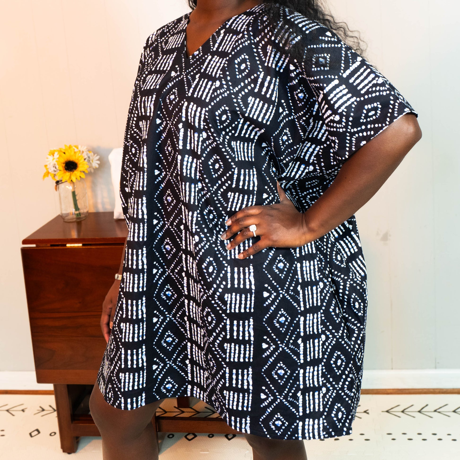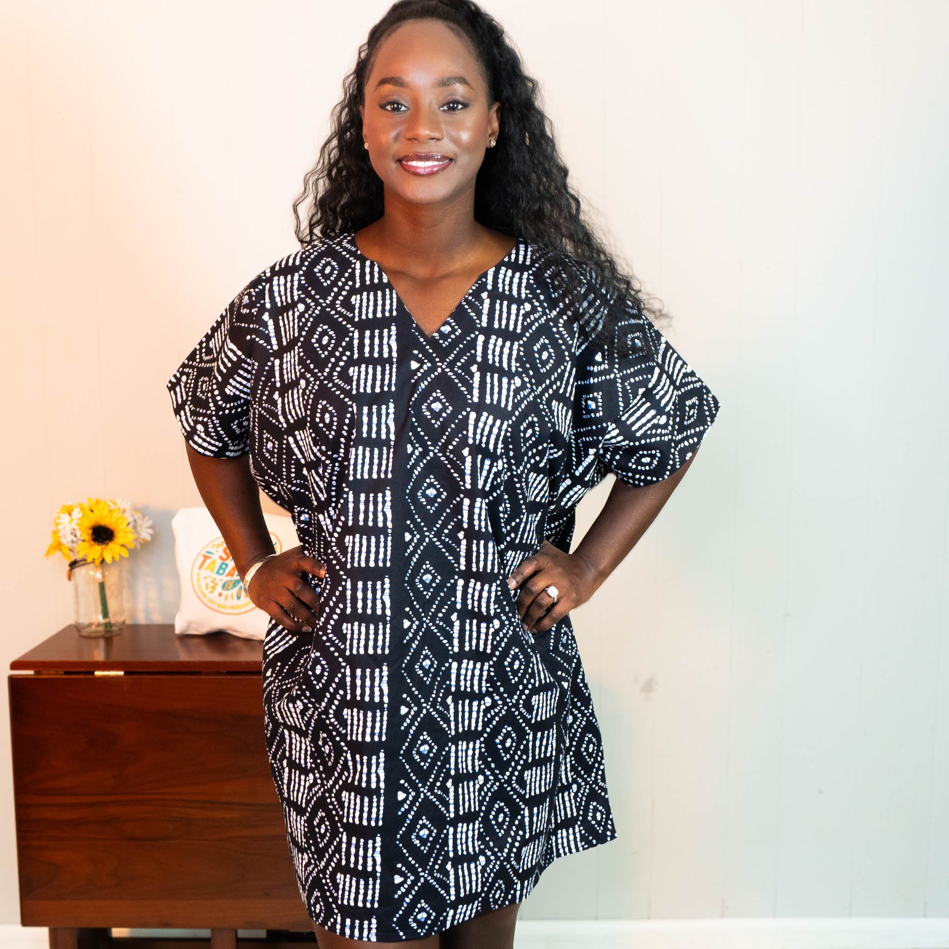 The Echo Shift – Grounded Glow is a playful take on timeless elegance. Made from 100% shibori cotton, this dress features a soft drape with just enough structure to flatter your silhouette. Its black, white, and blue print pairs beautifully with the Echo Kimono or stands out on its own. Wear it to lead with joy and make a quietly bold statement.